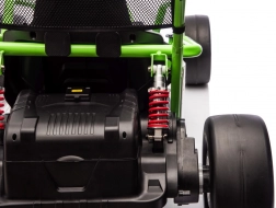 Motokára TORNADO je ideálnou voľbou pre malých pretekárov, ktorí milujú akciu. Dvojica silných motorov 2×150 W napájaná batériou 24 V (7 Ah) poskytuje plynulý záber, dve voliteľné rýchlosti a jednoduché ovládanie vpred/vzad. Predné mäkčené EVA kolesá zabezpečujú priľnavosť a tichú prevádzku, zatiaľ čo špeciálne zadné plastové kolesá umožnia ľahké driftovanie na vhodnom povrchu.