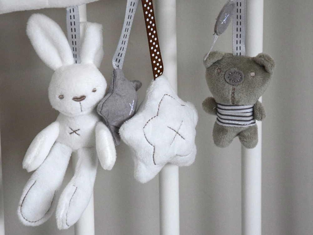 - 3 závesné prvky – zajačik s melódiou, hviezdička s píšťalkou, medvedík ako hrkálka.