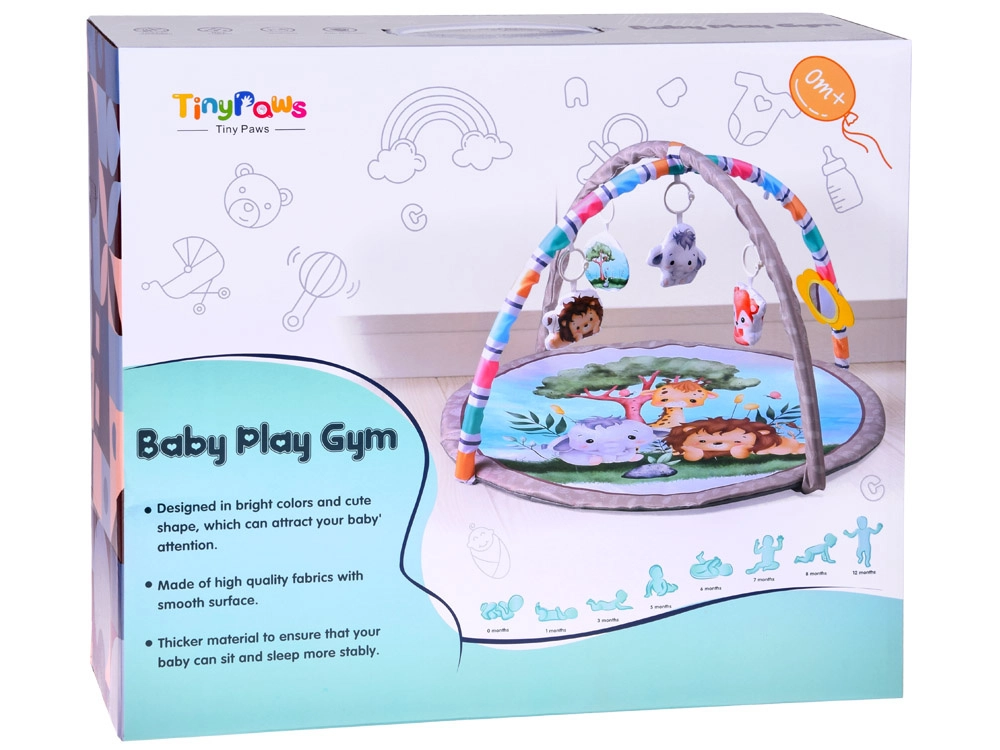 Vďaka odnímateľným a premiestniteľným hračkám možno prostredie ľahko obmieňať a udržať pozornosť dieťaťa. Podložka je mäkká, stabilná a príjemná na dotyk, vhodná na ležanie na brušku aj chrbte a rastie s dieťaťom od pozorovania hračiek až po prvé sedenie a lezenie.