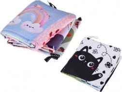 Ľahké látkové knižky s pestrými aj kontrastnými motívmi a integrovaným zrkadielkom podporujú vizuálnu pozornosť, zvedavosť aj prvé interakcie bábätka.