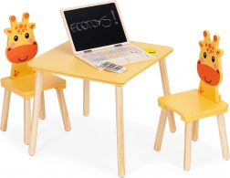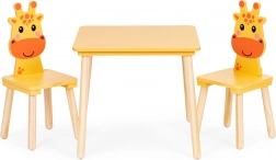 Vytvorte pre svoje deti čarovný kútik na kreatívne aktivity. Detský stolík so širokou, ľahko umývateľnou doskou a dve stoličky s operadlami v tvare žirafy zútulnia interiér a podporia samostatnosť aj správne sedenie. Masívne drevené nohy a pevné spracovanie zaistia dlhú životnosť a bezpečie pri každodennom používaní.