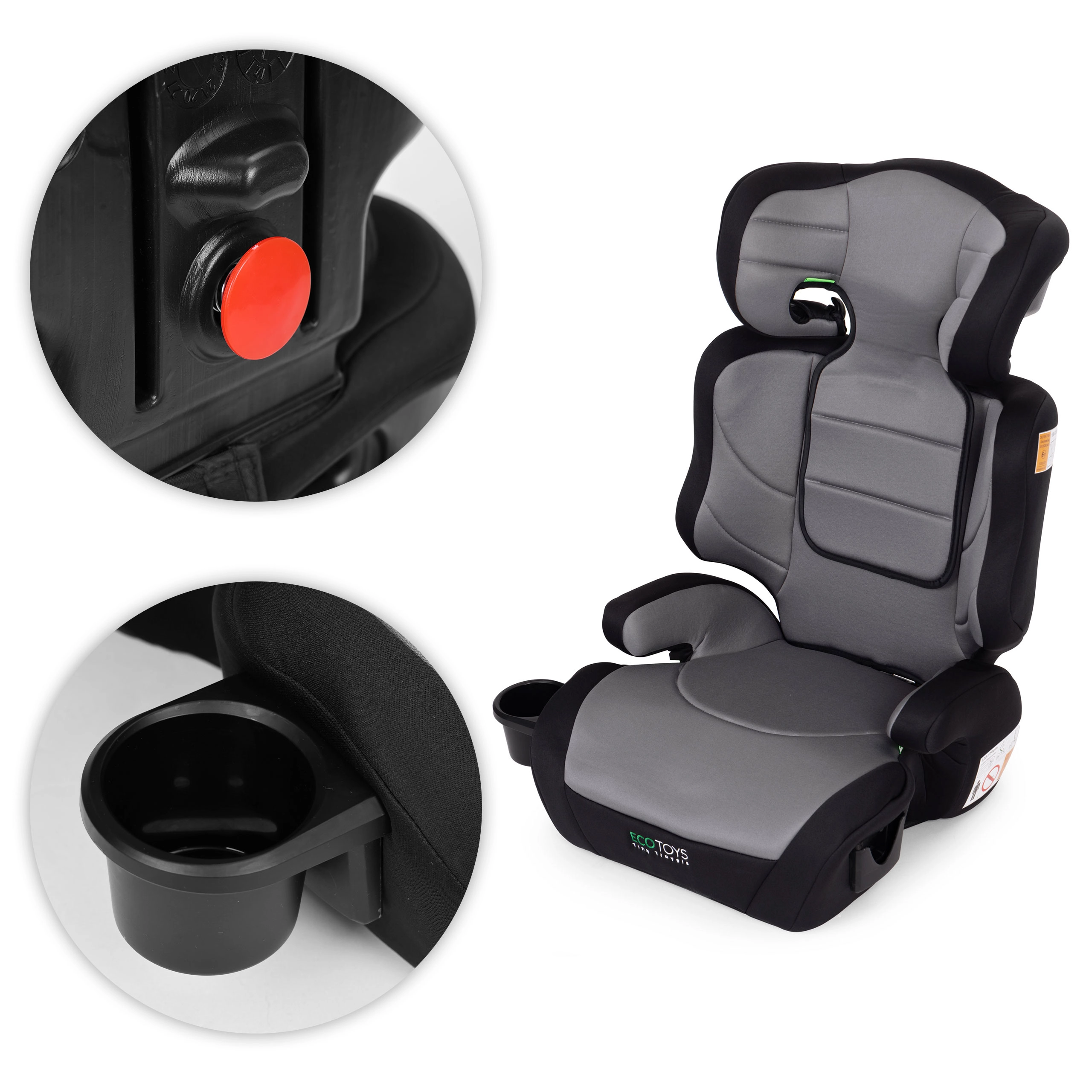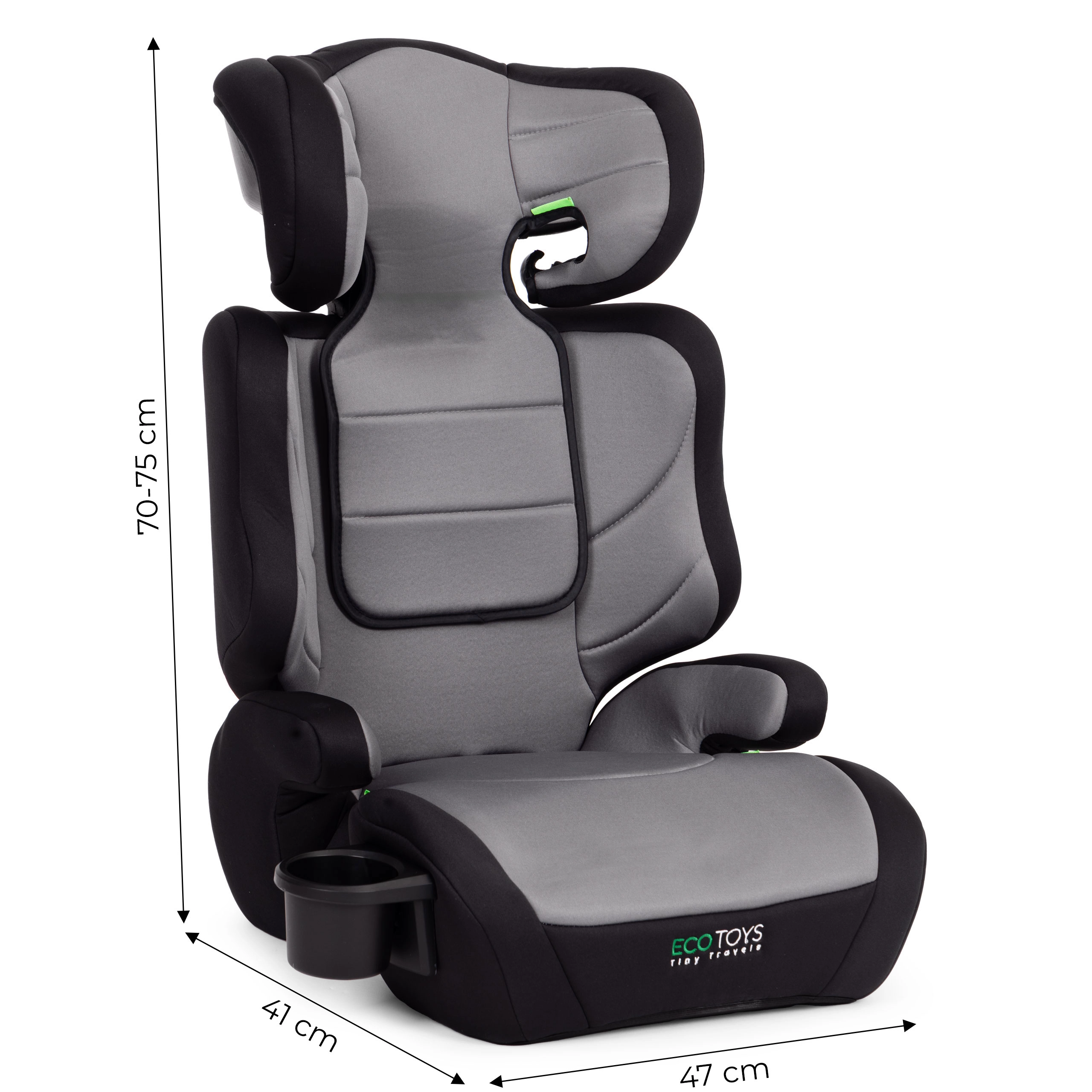 Autosedačka ECOTOYS rastie spolu s dieťaťom: ako plnohodnotná sedačka pre výšku 100–125 cm a ako samostatný podsedák 125–150 cm. Plynulo výškovo nastaviteľná opierka hlavy pomáha správne viesť bezpečnostný pás a zaisťuje stabilnú oporu hlavy aj trupu. Ergonomicky tvarované boky držia dieťa v správnej polohe a zvyšujú ochranu pri jazde.