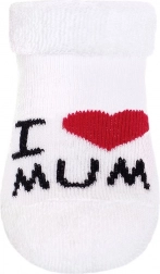 Hľadáte hrejivé a príjemné ponožky pre bábätko? Tieto detské froté ponožky New Baby v bielej farbe s obľúbeným nápisom I Love Mum and Dad sú ideálnou voľbou na každodenné nosenie. Mäkké froté zaistí komfort a teplo, zatiaľ čo pružný lem sa jemne prispôsobí nožičke a nikde netlačí.