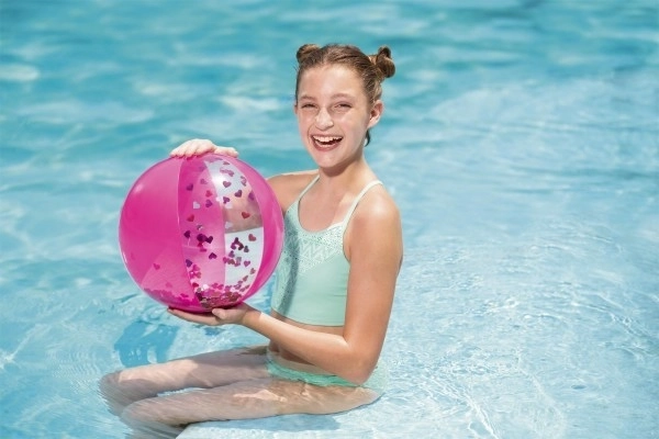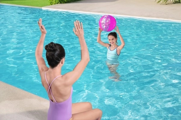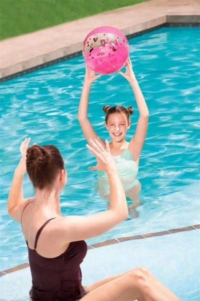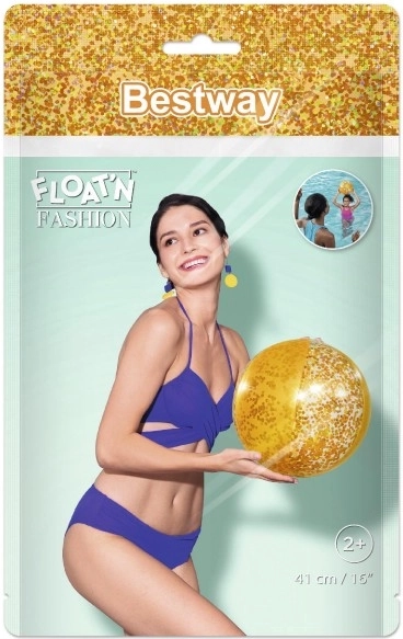Elegantná brokátová plážová lopta Bestway prináša veľa zábavy vo voľnom čase. Táto zlatá lopta je naplnená trblietavým brokátom, ktorý pri hre radostne víri a iskri.