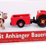 Tento kvalitný drevený traktor s prívesom poteší všetkých malých milovníkov hospodárstva. Farmár aj krava sú pripravení vyraziť na pole a vďaka pohyblivým rukám a nohám ožijú aj tie najmenšie detaily príbehu. Pogumované kolesá zabezpečujú hladký a tichý pohyb po akomkoľvek povrchu, takže hranie neruší ani v interiéri.