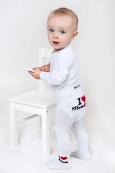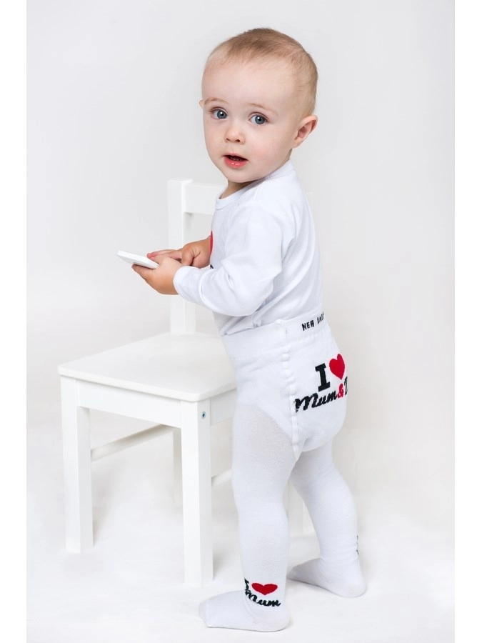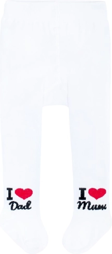 Objavte pohodlie a kvalitu s detskými pančucháčmi NEW BABY v bielej farbe. Vďaka vysokému podielu bavlny sú jemné k detskej pokožke, pružný materiál sa skvele prispôsobí a zaistí komfortné nosenie po celý deň. Roztomilý motív I Love Mum a I Love Dad z nich robí skvelý doplnok do šatníka každého malého objaviteľa.
