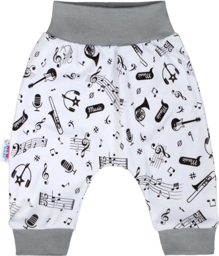 Pohodlné a mäkkučké polodupačky zo 100% bavlny s hravým motívom notičiek a hudobných nástrojov. Majú široký neškrtiaci pás, ktorý netlačí na bruško, a praktické zapínanie na cvoky medzi nohavičkami pre rýchle prebaľovanie. Univerzálny dizajn pre diečatká aj chlapčekov.