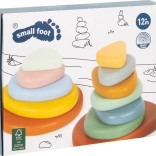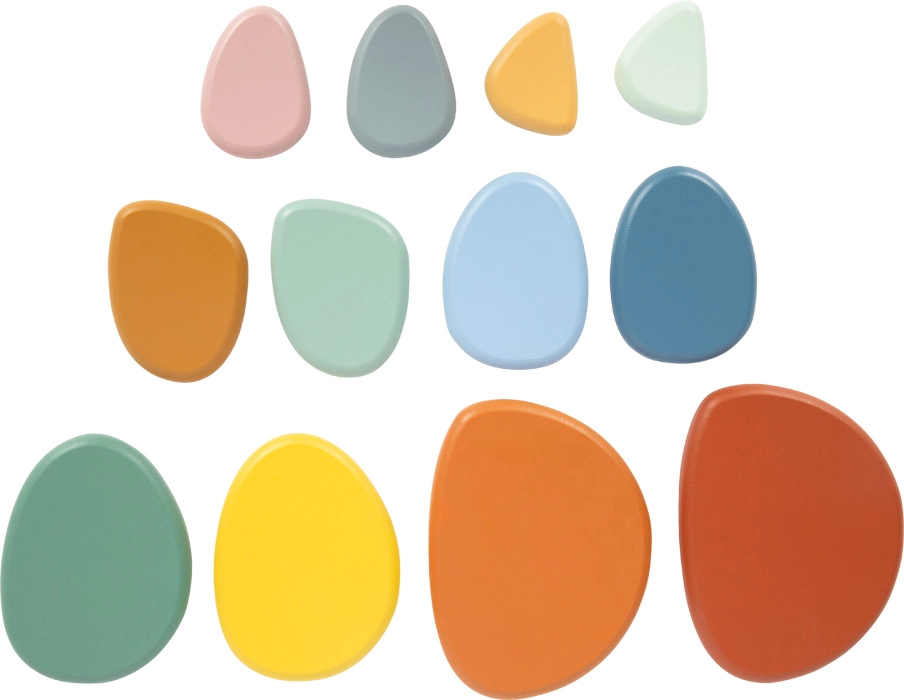 Táto nadčasová sada dvanástich „riečnych“ kameňov je inšpirovaná Montessori pedagogikou a nabáda deti ku pokojnej, sústredenej a tvorivej hre. Nepravidelné tvary, hladký povrch a pastelové tóny lákajú k stavaniu, balansovaniu, triedeniu podľa veľkosti a farieb aj k prvému počítaniu. Pri hre si deti nenásilne rozvíjajú jemnú motoriku, koordináciu oko–ruka a trpezlivosť.