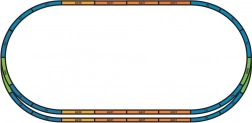 - 14× 55412 oblúk R2 422 mm; 8× 55401 rovná 231 mm; 1× 55406 rovná 231 mm pre svorku; 3× 55400 rovná 239 mm; 1× 55422 BWL; 1× 55423 BWR; 1× 55447 základňa pre svorku; 1× 55275 spojovacia svorka; kábel na pripojenie koľají