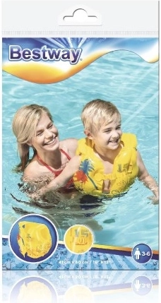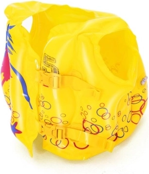 Bezpečná a zábavná plavecká vesta pre deti vo veku 3–6 rokov. Jasne žltá farba a tropický dizajn zabezpečujú nielen atraktívny vzhľad, ale aj jednoduchú viditeľnosť vo vode.