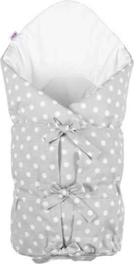 Zavinovačka New Baby v klasickom šnurovacom prevedení sa vracia ako overená voľba pre prvé mesiace bábätka. Vďaka trom radom stúh bábätko pevne a pohodlne objíme, čo navodzuje pocit bezpečia a napomáha pokojnému spánku. Mäkký bavlnený poťah je šetrný k citlivej pokožke a sivý dizajn s bodkami sa ľahko kombinuje s výbavičkou.