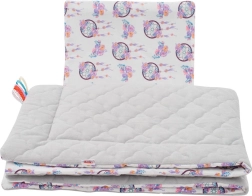Štýlová a pohodlná obojstranná sada do kočíka NEW BABY v sivom dizajne lapača snov. Spája mäkký velvet a priedušnú bavlnu pre maximálne pohodlie bábätka. Obsahuje vankúšik a prikrývku s antialergickou výplňou, farebné stužky na upútanie pozornosti a materiály spĺňajúce Oeko-Tex Standard 100.