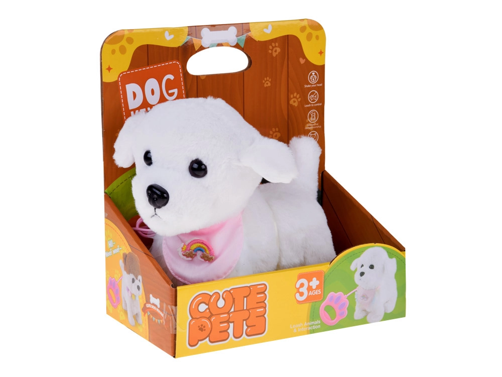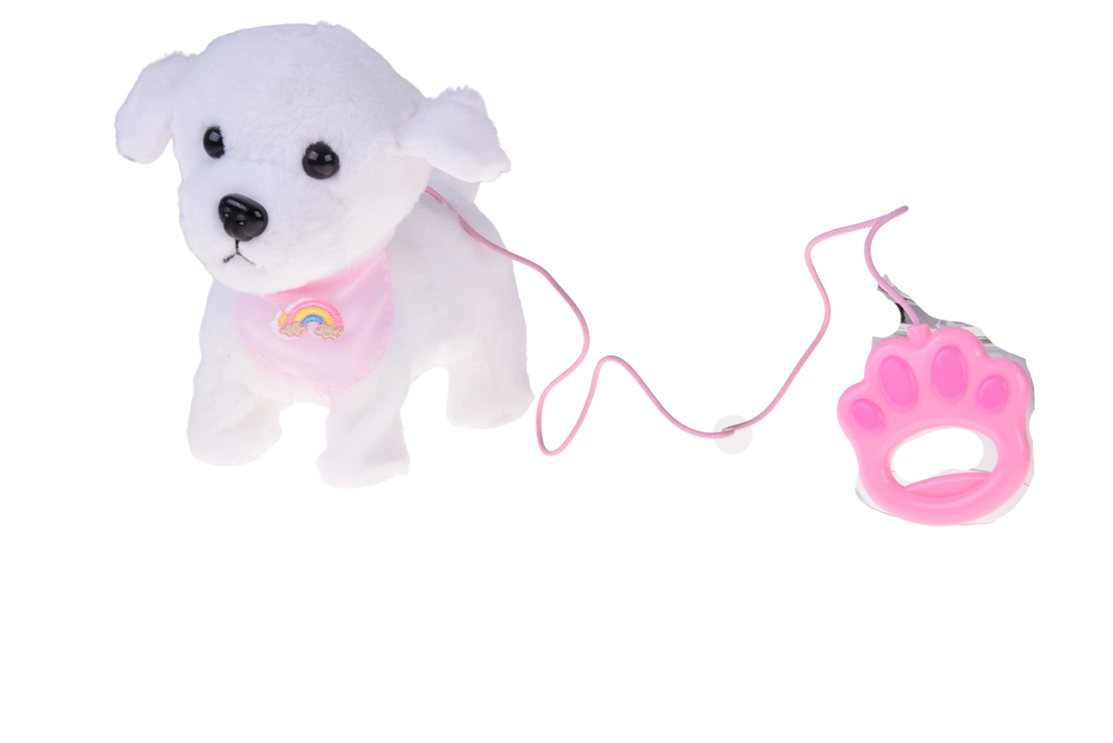 Tento interaktívny psíček prináša deťom radosť aj zábavu pri spoločných „prechádzkach“. Vďaka jednoduchému ovládaniu na vodítku sa ľahko rozbehne dopredu, poštekáva a kýva chvostíkom ako skutočný maznáčik. Mäkučké prevedenie a precízne detaily (lesklé očká, roztomilý ňufáčik) podporujú maznanie aj fantazijnú hru.