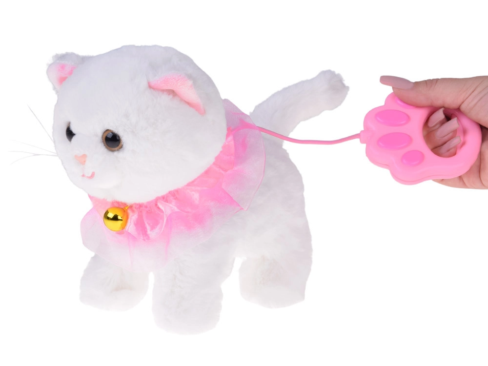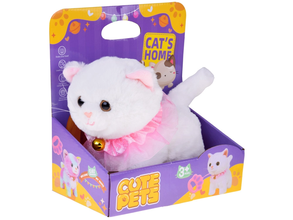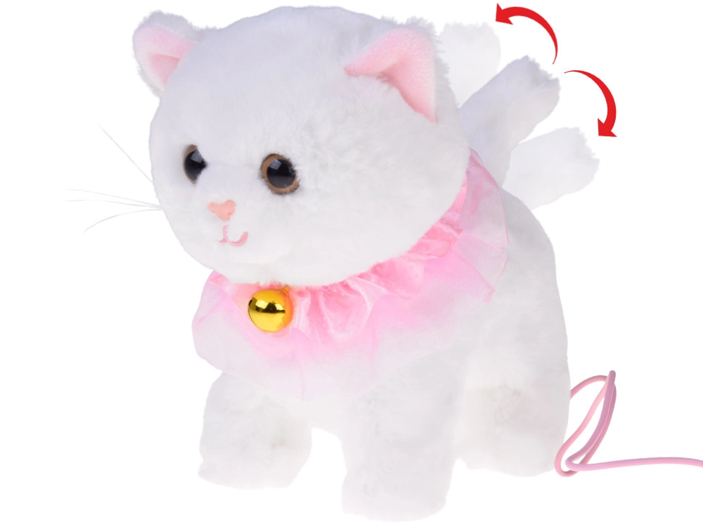 Roztomilé interaktívne mačiatko poteší každého malého milovníka zvierat. Po stlačení tlačidla na vodítku sa rozbehne, mňauká, vydáva realistické zvuky a kýve chvostíkom. Je vyrobené z mäkkého, príjemného materiálu, má roztomilé detaily a je ideálne na hru na prechádzky a starostlivosť o miláčika.