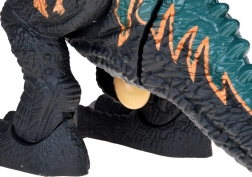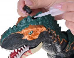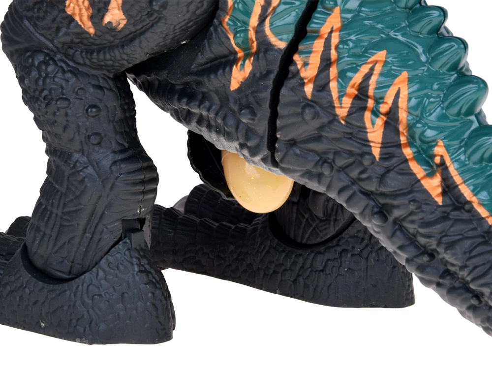 Jedinečný efekt pary: pod čiernym hrotom na hlave je nádržka na vodu. Po naplnení priloženou fľaštičkou dinosaurus vypúšťa paru z papule, ktorú navyše podsviecuje LED, takže vzniká ohromujúci vizuálny efekt. Na chrbte sa nachádza otvor na vloženie vajíčok – T‑Rex ich následne „znese“. V balení sú 3 otváracie vajíčka so zberateľskými figúrkami mláďat.