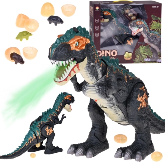 Objavte realistickú zábavu s interaktívnym dinosaurom T‑Rex, ktorý chodí, reveruje, svieti a vypúšťa paru z papule. Najväčšou atrakciou je funkcia znášania vajíčok – v balení nájdete 3 otváracie vajíčka s roztomilými mláďatami. Kvalitné spracovanie, výrazné svetelné a zvukové efekty a pohyblivé časti zaistia dlhé hodiny hry.