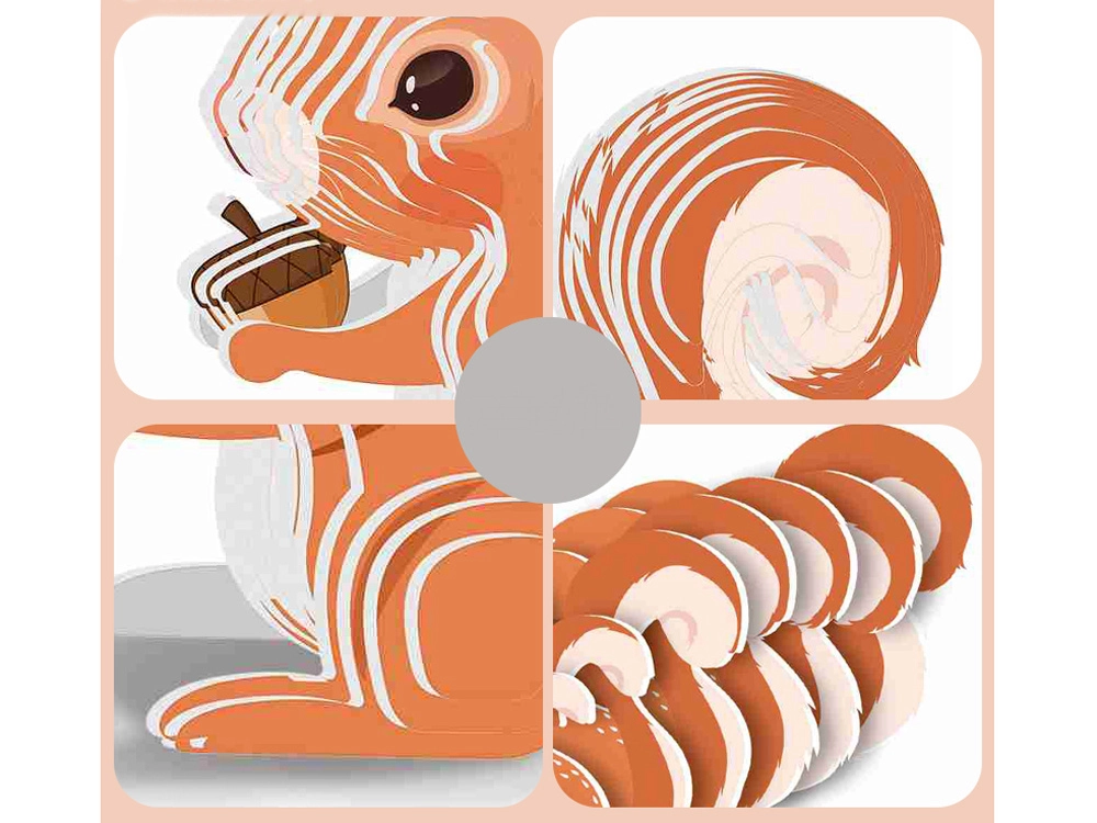 Objavte zábavnú stavebnicu, s ktorou deti jednoducho zložia trojrozmernú figúrku veveričky. Diely sú vyrobené z ľahkej a bezpečnej kartónovej hmoty a vďaka presnému tvarovaniu sa do seba ľahko zacvaknú bez lepidla. Zostavenie podľa návodu na obale zvládnu aj menší stavitelia.