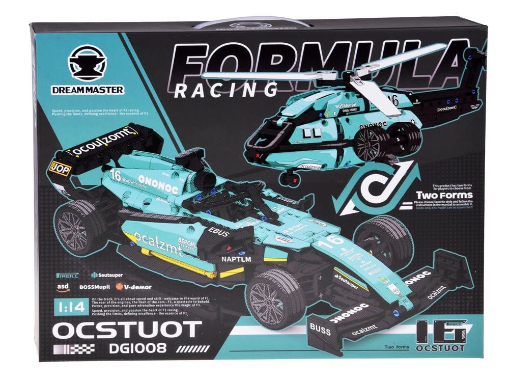Objavte zábavu a učenie v jednom s technickou stavebnicou 2v1. Z rovnakej sady dielikov postavíte buď rýchly monopost FORMULE 1, alebo dynamickú helikoptéru (v jednom okamihu možno zostaviť iba jeden model). Diely sa ľahko a pevne spájajú, takže konštrukcia je stabilná a pripravená ako na vystavenie, tak na ďalšie hranie.