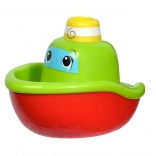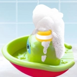 Po ponorení a stlačení vo vode loďka vypúšťa z komína penové bubliny – efekt, ktorý deti milujú a ktorý spestrí každý kúpeľ.