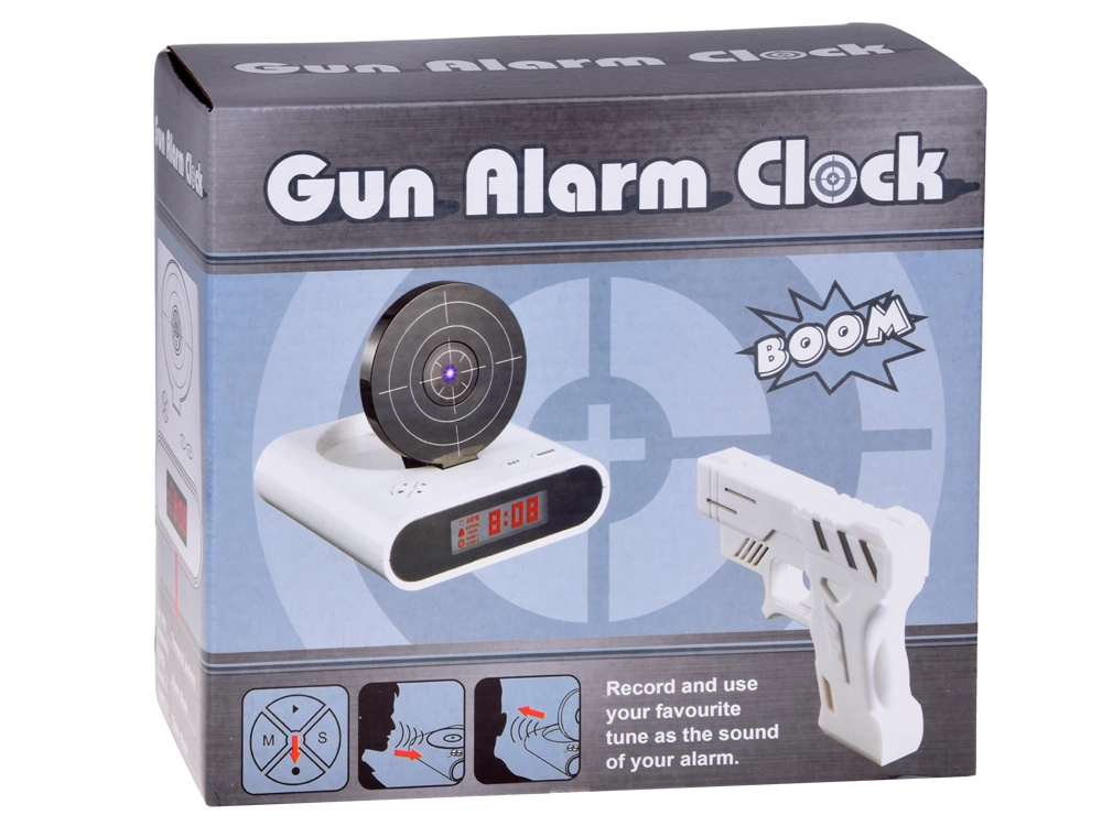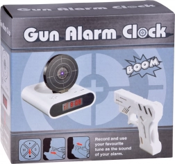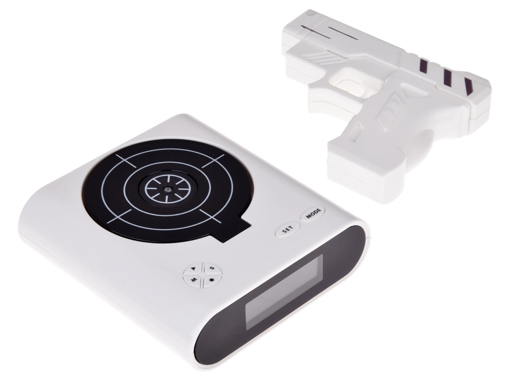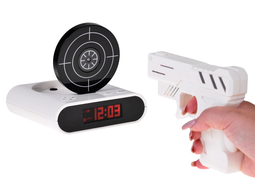 Spríjemnite si ranné vstávanie s originálnym budíkom, ktorý umlčíte mierením na terč a stlačením spúšte. Tento zábavný budík ponúka streľbu na terč pomocou infračervenej pištole, možnosť nahrať vlastný zvuk alarmu a 2 herné režimy. Vďaka čitateľnému LCD displeju a napájaniu batériami alebo cez micro USB je ideálny do spálne, kancelárie aj ako netradičný darček.