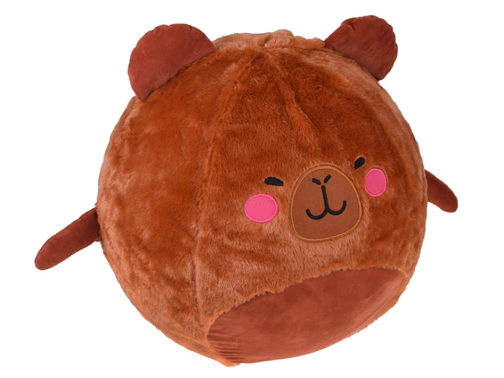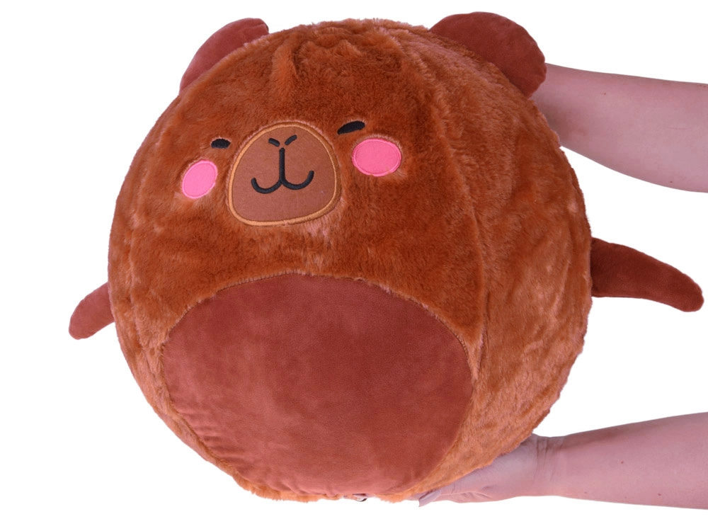 Roztomilá plyšová lopta v tvare kapybary s priemerom cca 45 cm spája radosť z pohybu a bezpečnú zábavu. Vo vnútri je pružná guma pre skvelé odskoky, zvonka mäkký plyš príjemný na dotyk – ideálne pre deti od 3 rokov doma, na záhrade aj v škôlke.