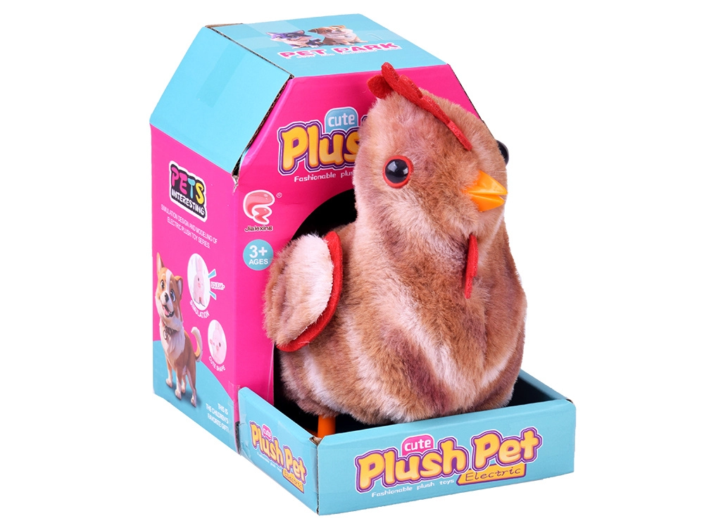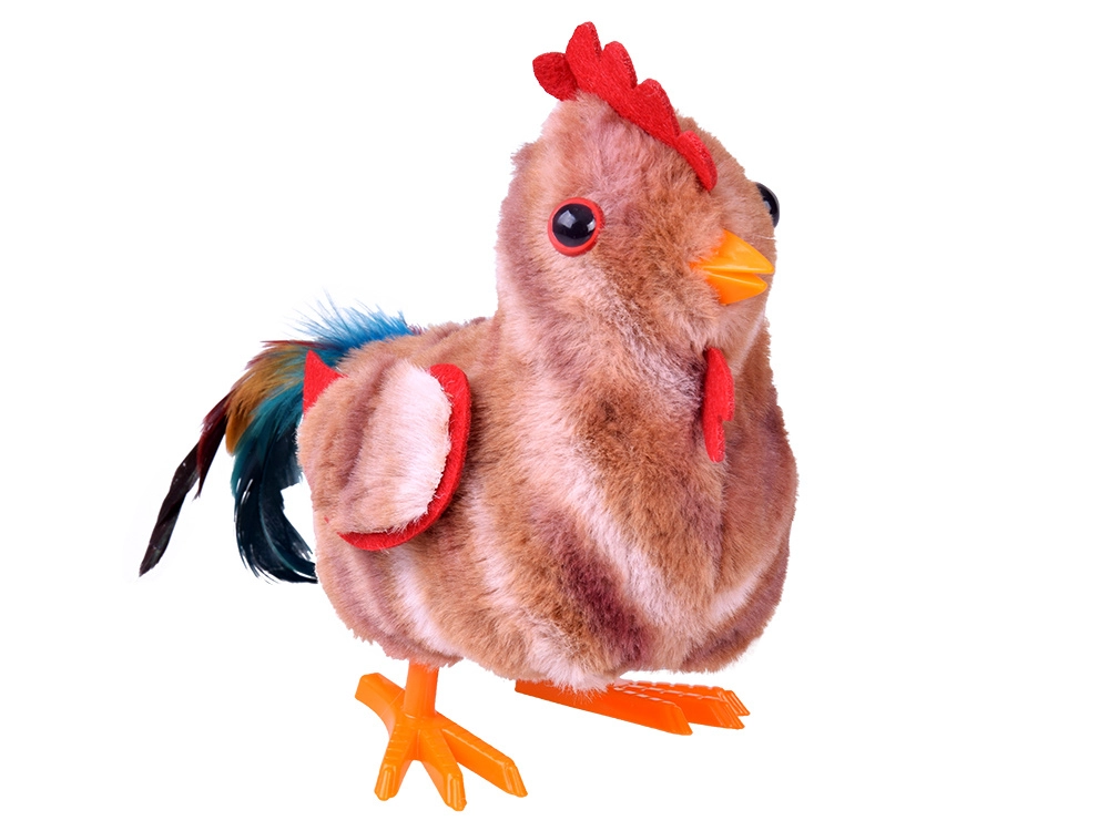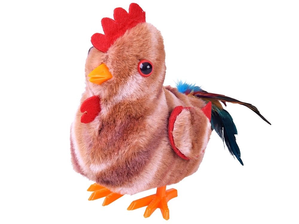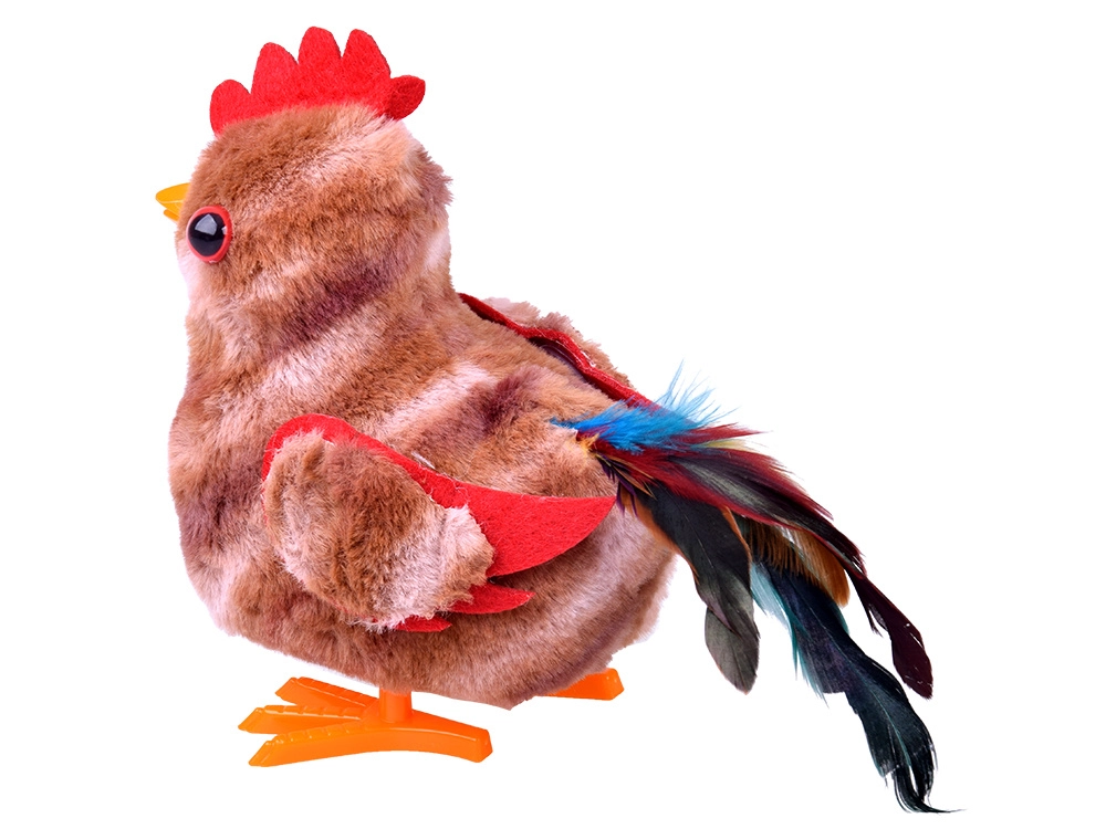 Po zapnutí sa kohút rozbehne drobným krokom a veselo máva krídlami – perfektné pre dynamickú a veselú hru.