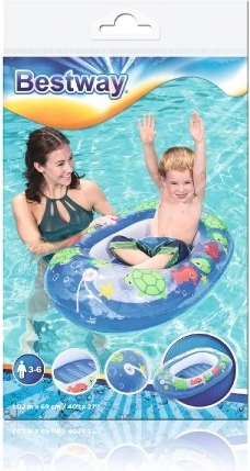 Čln je ľahký, ľahko prenosný a rýchlo pripravený na použitie – perfektný parťák na dovolenku, k jazeru aj do záhradného bazéna. Farebné morské motívy navyše deti okamžite zaujmú a podporia ich istotu vo vode.