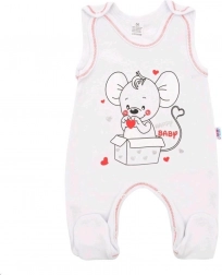 Materiál zo 100% bavlny je mäkký, priedušný a šetrný k citlivej pokožke, takže je vhodný na každodenné nosenie. Vďaka zapínaniu na cvočky na ramienku a medzi nožičkami je prebaľovanie aj obliekanie otázkou chvíľky.