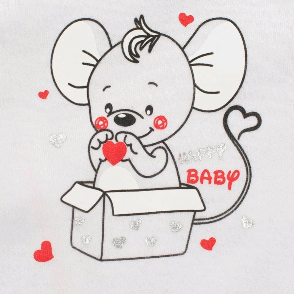Táto súprava pre bábätká kombinuje jemnosť, praktickosť a roztomilý dizajn. Jednofarebný kabátik so zapínaním na cvočky po celej dĺžke sa ľahko oblieka aj vyzlieka. Dupáčky zdobí kontrastné lemovanie a veľká potlač myšky, ktorá dodá outfitu hravý vzhľad.