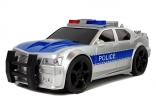 Doprajte deťom akčnú zábavu! Policajné auto v mierke 1:20 ponúka frikčný pohon na rýchly štart, svetelné a zvukové efekty so sirénou, odolné spracovanie s gumovými pneumatikami a otvárateľný kufor pre ešte realistickejšiu hru. K dispozícii v striebornej alebo čiernej farbe.