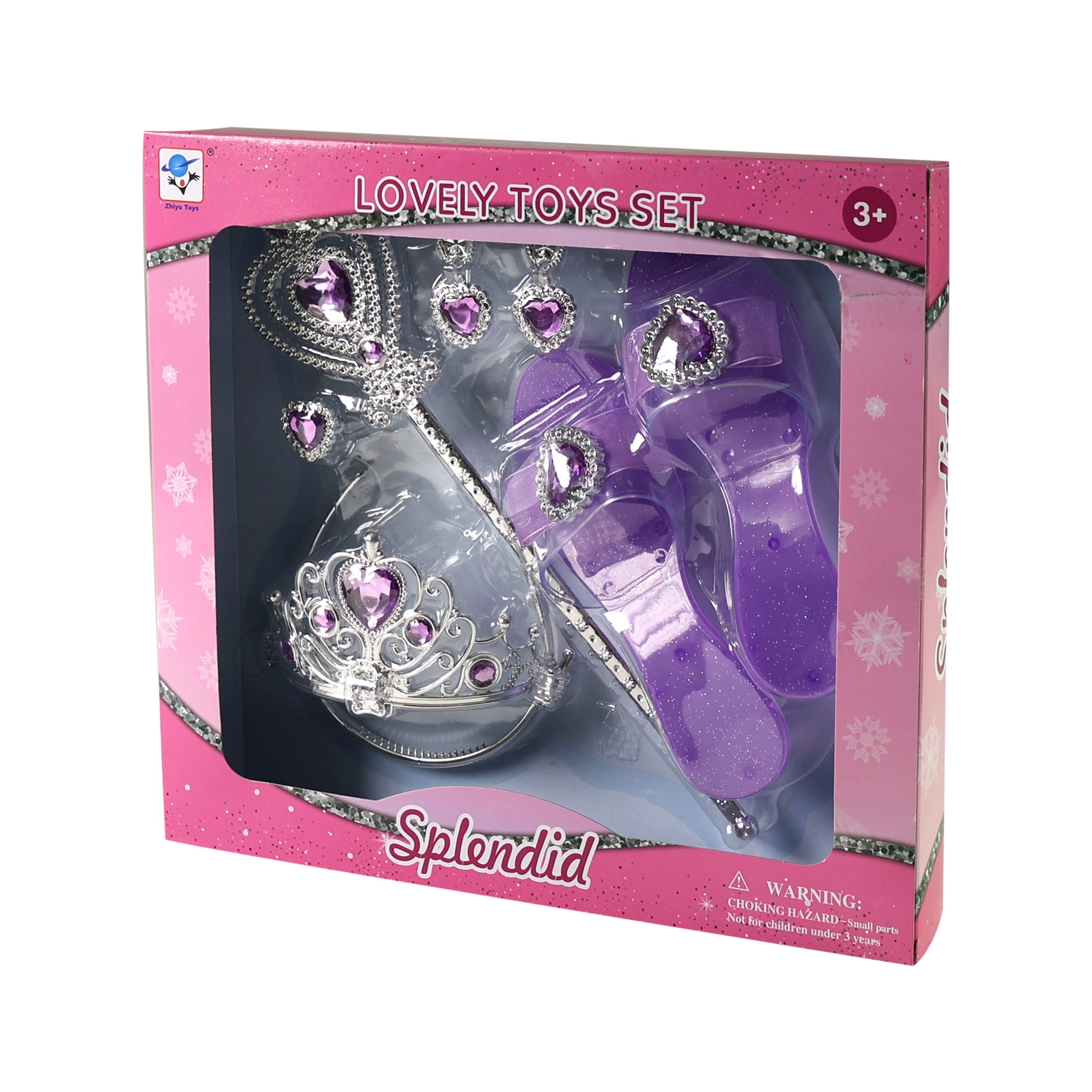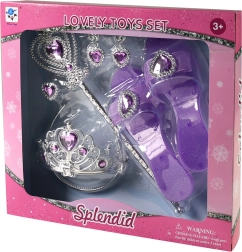 Táto kúzelná sada pre malé princezné poteší všetky milovníčky prezliekania. Vďaka elegantnej strieborno‑fialovej kombinácii a srdiečkovým kamienkom pôsobí celý set slávnostne a očarujúcim dojmom. Deti môžu rozvíjať fantáziu, kreativitu a rolovú hru pri každej zábavnej príležitosti – od hrania doma až po detské párty.