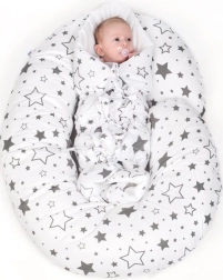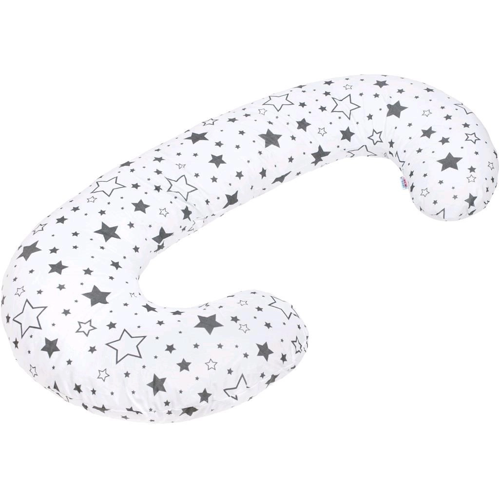 Štýlová a praktická náhradná obliečka pre dojčiaci vankúš v tvare C od značky New Baby v neutrálnom sivom motíve hviezd. Vďaka skrytému zipsu ju ľahko a rýchlo vymeníte, materiál zo 100% bavlny je šetrný k citlivej pokožke a má certifikáciu OEKO-TEX Standard 100.