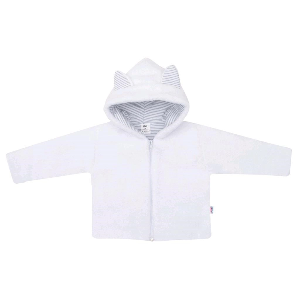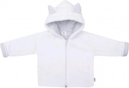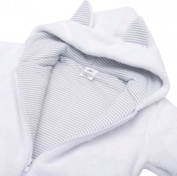 Roztomilá kapucňa s uškami chráni pred chladom a pruhovaná 100% bavlnená podšívka je jemná k citlivej pokožke bábätka.
