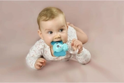 Vyrobené z kvalitného, na dotyk príjemného silikónu. Veselé farby a tvar slona zaujmú na prvý pohľad a podporia zmyslovú stimuláciu.