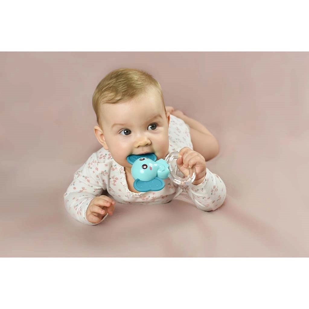 Silikónové hryzadlo s hrkálkou Akuku slon kombinuje jemné masírovanie ďasien s príjemným zvukom hrkálky, ktorý motivuje dieťa k hre a rozvíja sluchové vnímanie. Ergonomický tvar a ľahká konštrukcia uľahčujú uchopenie a podporujú rozvoj jemnej motoriky.