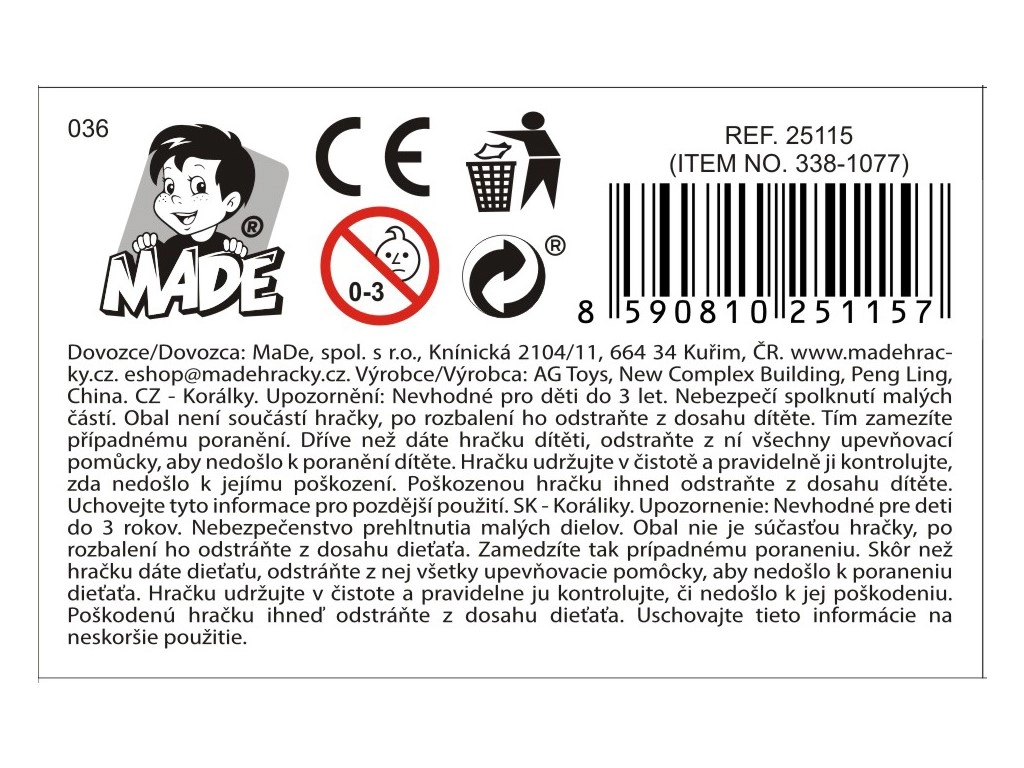 - Bezpečné prevedenie – neobsahuje malé diely, vhodné od 3 rokov.