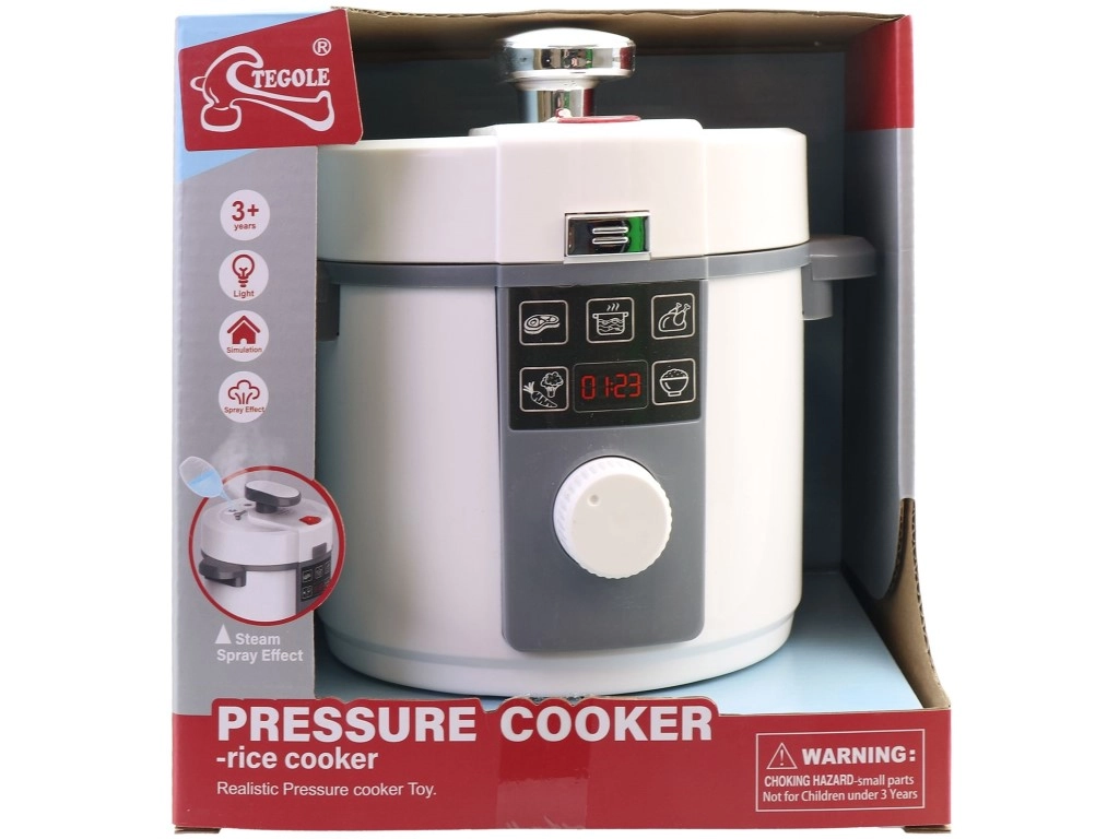 Detský tlakový hrniec – ryžovar na batérie s priemerom 18 cm z kvalitného plastu prináša realistické zvuky a svetelné efekty (po vložení batérií) a podporuje kreatívnu hru na varenie. Je vhodný pre deti od 3 rokov a dodáva sa v darčekovom window box balení.