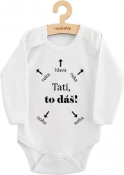Štýlové a pohodlné body New Baby poteší rodičov aj bábätko. Kvalitný bavlnený úplet je príjemný na dotyk, priedušný a vhodný na každodenné nosenie. Vtipný motív Tati, to dáš! dodá vášmu drobčekovi šmrnc a postará sa o úsmevy na každej návšteve.
