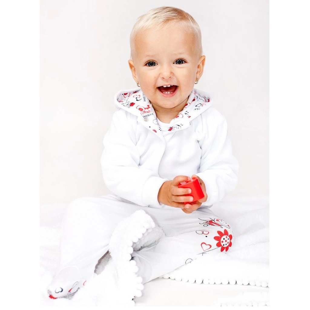 Táto semišová mikina pre najmenších je skvelou voľbou na chladnejšie dni. Príjemný materiál s podielom bavlny je hebký na dotyk a šetrný k detskej pokožke, zatiaľ čo kapucňa poskytne dodatočné teplo a pohodlie. Dekoratívna aplikácia lienky dodáva mikine hravý vzhľad.