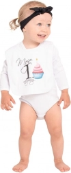 Potlač s vtipným nápisom mama + tata = ja je z certifikovaných farieb vhodných pre bábätká. Praktické zapínanie na cvok uľahčuje rýchle nasadenie aj zloženie a biele lemovanie dodáva podbradníku čistý vzhľad.