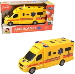 Realistická detská sanitka na zotrvačník so svetelnými efektmi, zvukom majáka a hlasovými hláškami dispečingu a posádky. Plastové prevedenie, veľkosť cca 19 cm, ideálne pre chlapcov aj dievčatá od 3 rokov.