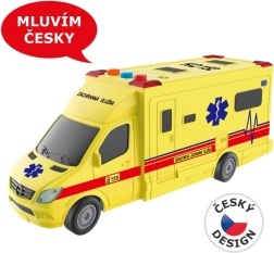 Táto detailne spracovaná sanitka v slovenskom dizajne Záchrannej zdravotnej služby prináša deťom množstvo akcie a zábavy. Po stlačení tlačidla spúšťa realistické hlásenia dispečingu a posádky, doplnené o funkčný maják so svetlom a zvukové efekty. Vďaka pohonu na zotrvačník sa auto ľahko rozbehne po podlahe bez potreby neustáleho tlačenia.