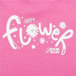 Táto nežná súprava pre dievčatká sa skladá z trička a pohodlných tepláčikov. Tričko zdobia romantické volánikové rukávy a nápis Happy Flower, zapínanie na patentku pri krku na zadnej strane uľahčuje obliekanie. Tepláčky majú širší pružný lem v páse aj na nohaviciach pre perfektné držanie a komfort pri nosení.