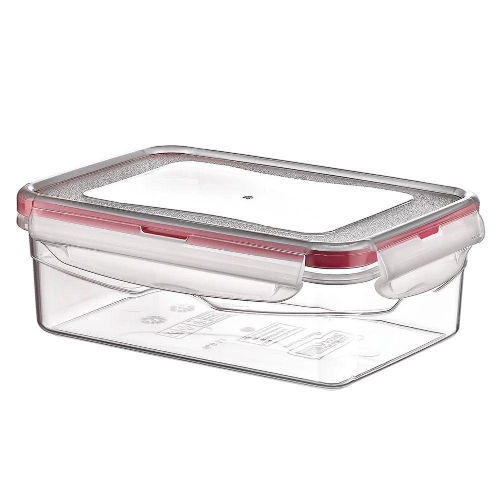Transparentný plastový box na potraviny s objemom 400 ml udrží vaše jedlo dlhšie čerstvé vďaka silikónovej tesniacej vložke a štyrom uzatváracím klipom. Kompaktné rozmery 15 × 10,5 × 5 cm sa hodia do chladničky, tašky aj lunch boxu a umožňujú jednoduché vrstvenie a organizáciu.