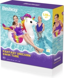 Vneste do leta rozprávku s nafukovacím kruhom v tvare jednorožca od Bestway. Farebný dizajn, rozmery 119 × 91 cm, odolný testovaný vinyl a nosnosť až 90 kg zaručia pohodlné relaxovanie pri bazéne, na jazere aj pri mori. Súčasťou je záplata na rýchlu opravu.