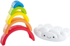 Táto roztomilá skladačka v podobe dúhy s obláčikom je ideálna prvá hračka na rozvoj zručností. Vďaka pestrým farbám deti prirodzene priťahuje a motivuje ich k objavovaniu tvarov a veľkostí. Pri skladaní oblúkov si precvičujú úchop, koordináciu ruka–oko a trpezlivosť.