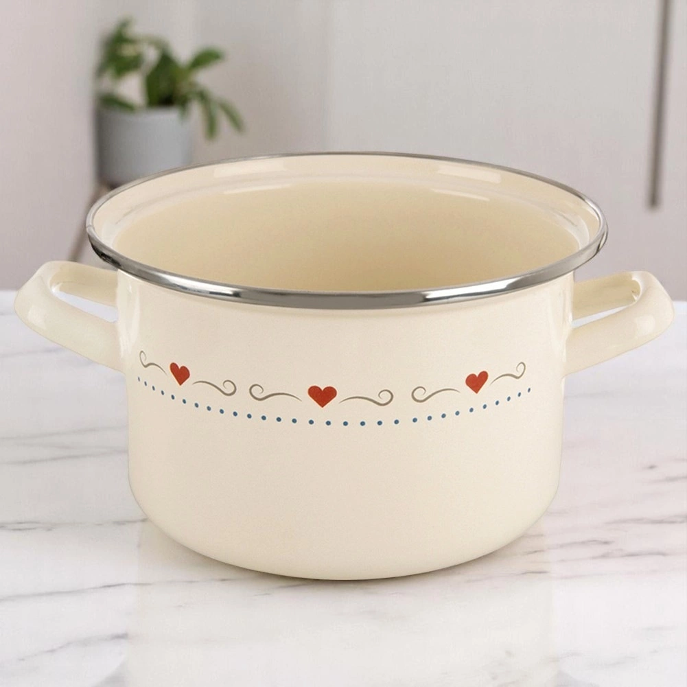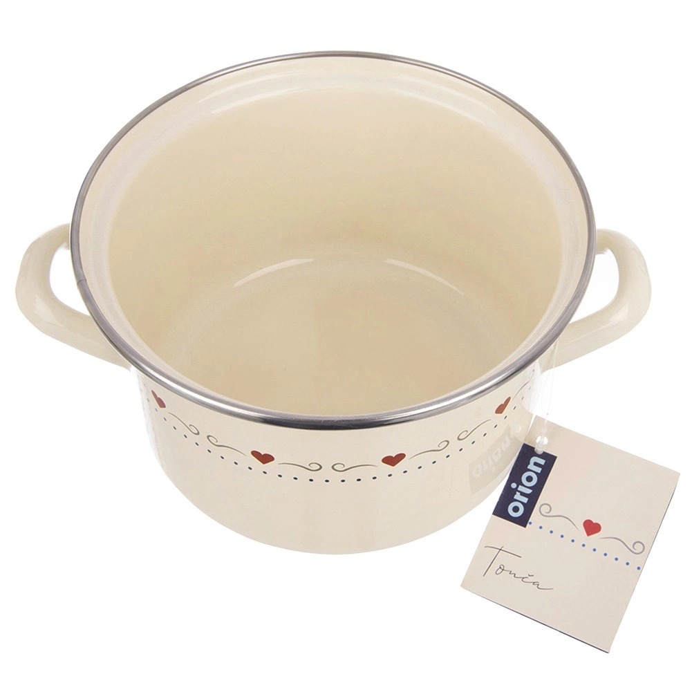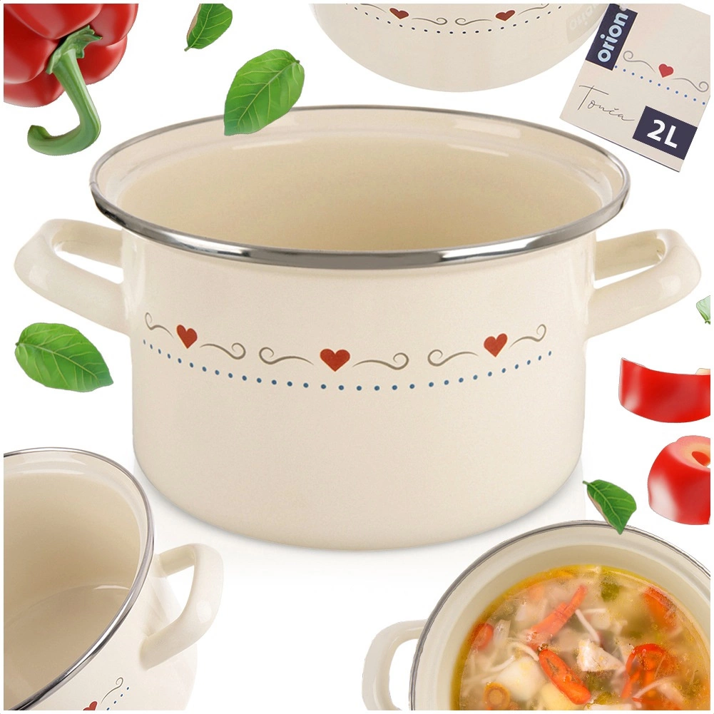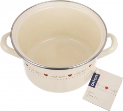 Objavte praktického pomocníka na každodenné varenie. Smaltovaný hrniec TONCA v retro štýle je ideálny na varenie aj dusenie polievok, omáčok aj hlavných jedál. Krásny krémový dizajn so srdiečkami ozdobí vašu kuchyňu a vďaka pevným úchytom zaistí bezpečnú manipuláciu.