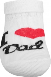 Ľahučké bavlnené ponožky New Baby pre bábätká ponúkajú pohodlné nosenie vďaka kvalitnému materiálu s vysokým podielom bavlny. Pružný lem zabezpečí, že ponožky dobre držia, ale netlačia na citlivé detské chodidlo. Veselý motív I Love Mum and Dad a čisto biela farba sa hodia ku každému outfitu.