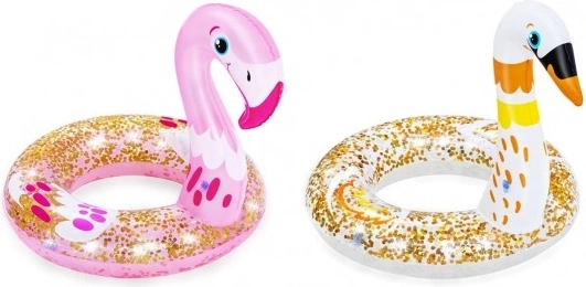 Nafukovací kruh s motívom labute zaujme trblietavým dizajnom a živými farbami, ktoré deti milujú. Je vyrobený z odolného PVC a navrhnutý tak, aby vydržal opakované nafukovanie a vyfukovanie. Praktický bezpečnostný ventil bráni nechcenému úniku vzduchu.