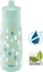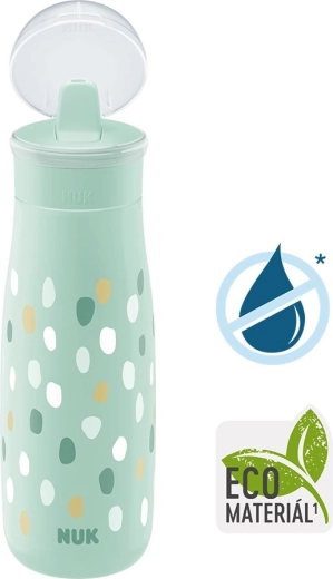 NUK Mini-Me Flip je ideálny spoločník pre malých dobrodruhov. Vďaka náustku 2 v 1 si dieťa zvolí, či bude piť cez slamku, alebo priamo. Materiál náustku je odolný proti hryzeniu, takže bez problémov zvládne prvé zúbky. Fľaša je navrhnutá s dôrazom na udržateľnosť a kvalitu – telo je vyrobené z 82 % udržateľných materiálov a neobsahuje BPA.